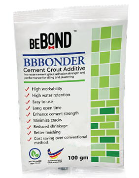 BEBOND BBBONDER are particularly designed with high water withholding and enhances cement mortar tenacity and strength. It ensures increased workability and cost-effectiveness without compromising on the quality. Through its powerful adhesive properties, it helps in minimizing cracks and patches on the surfaces.